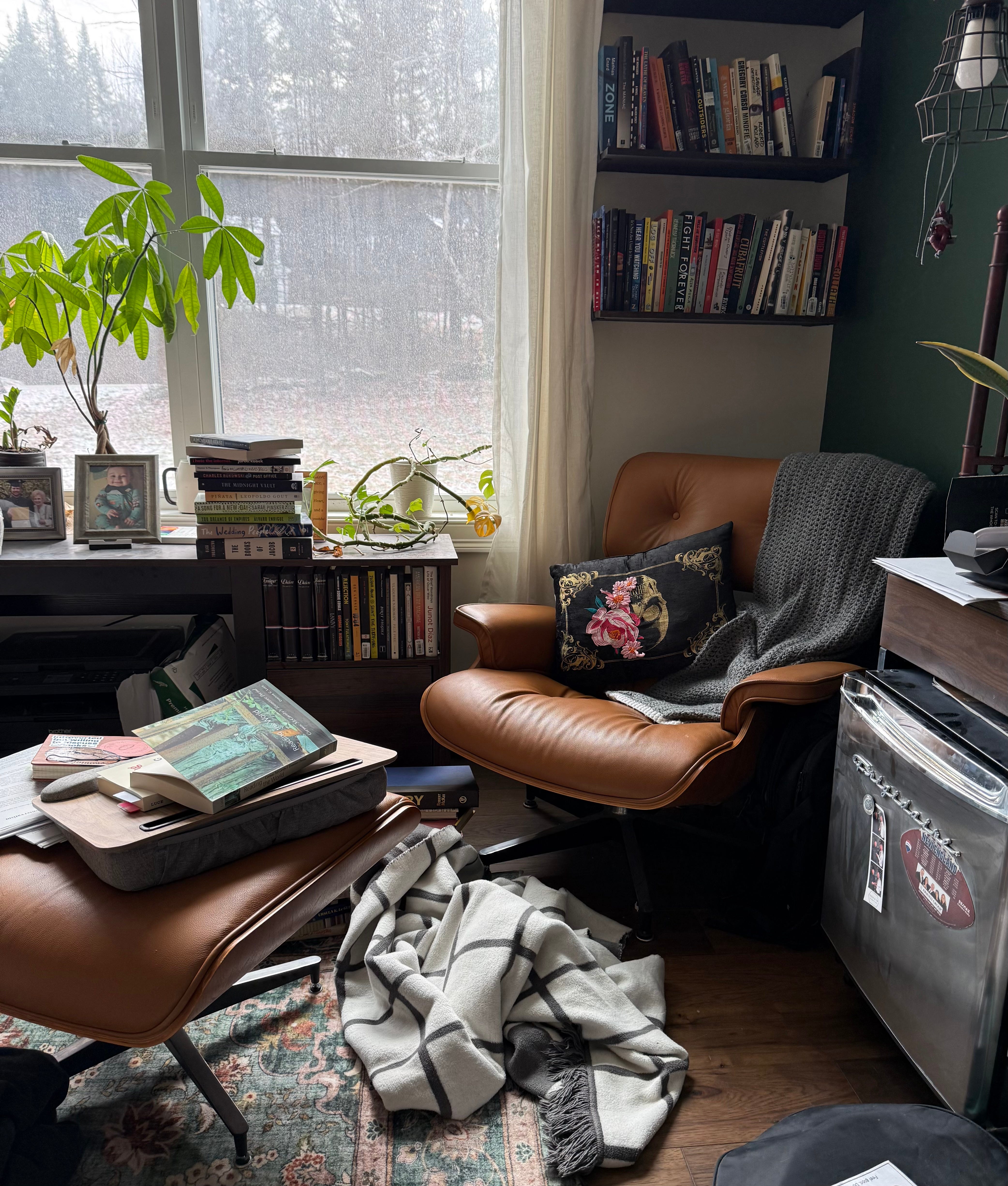 I have a knock-off version of the Herman Millers Eames chair that is a required piece for people who make “mid-century modern” their whole personality. I’ve been using it as my escape from screens this week.